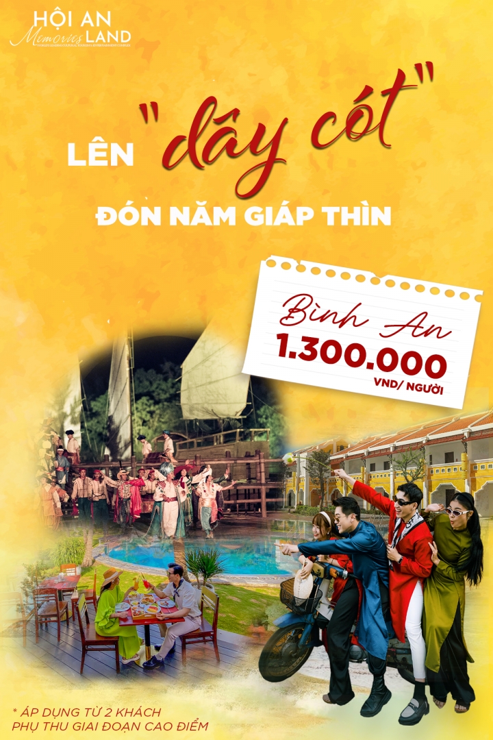 为了让所有游客都能在这里充分享受最令人印象深刻的体验,会安记忆岛推出了极具吸引力的优惠套餐:1,300,000越南盾/人的平安套餐,希望游客在会安记忆岛的每时刻都安然快乐: