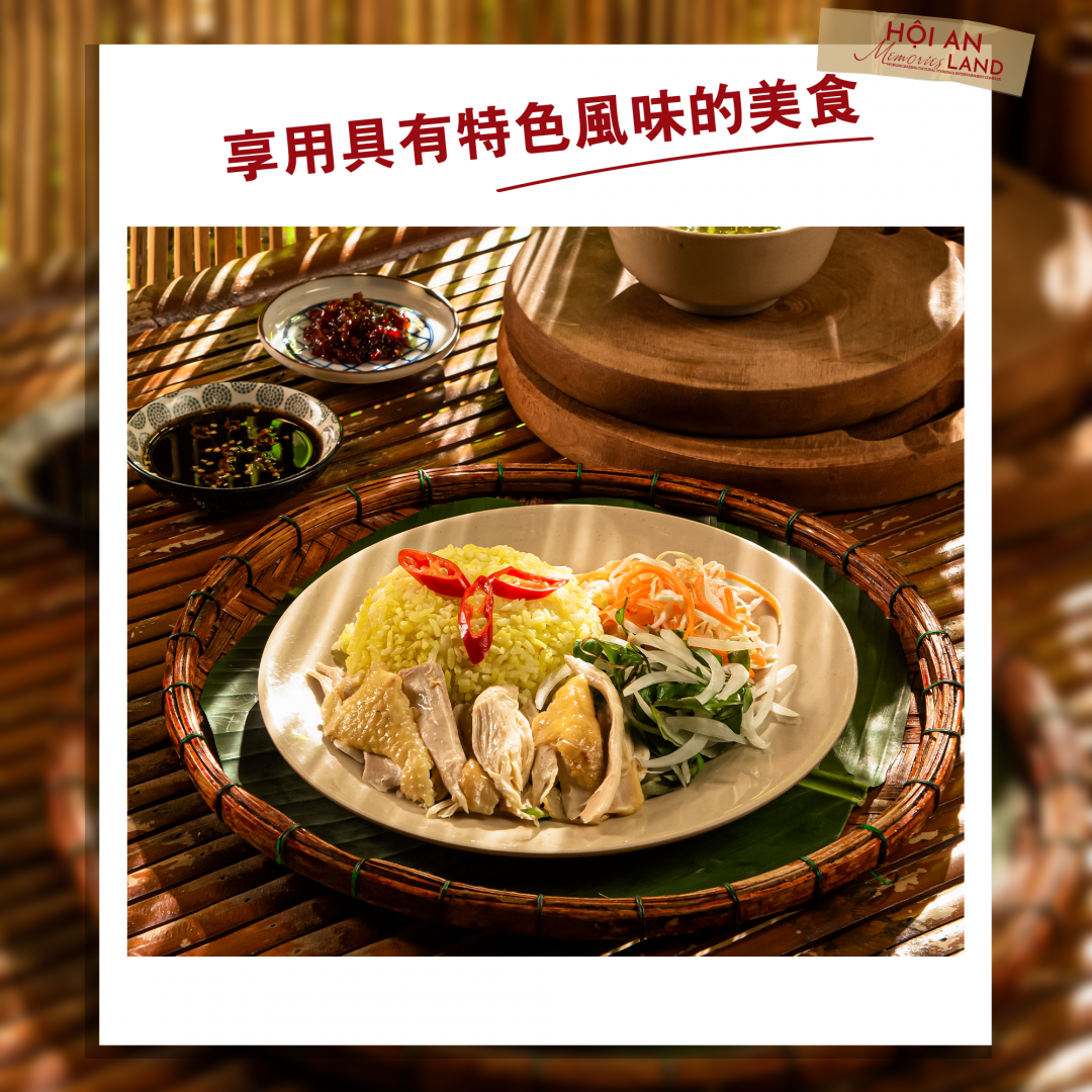 從剛捕獲的鮮甜海鮮到多種醬料的傳統菜餚,會安回憶島嶼的每一餐都是一首獻給美食的情歌。無論是浪漫的兩人晚餐,還是與親朋好友的溫馨聚餐,會安回憶島嶼的美食都會永遠銘刻在您的記憶中,像是高樓麵和廣南麵這些由廣南地區的頂尖主廚烹調之特色美食,總能讓您回味無窮。