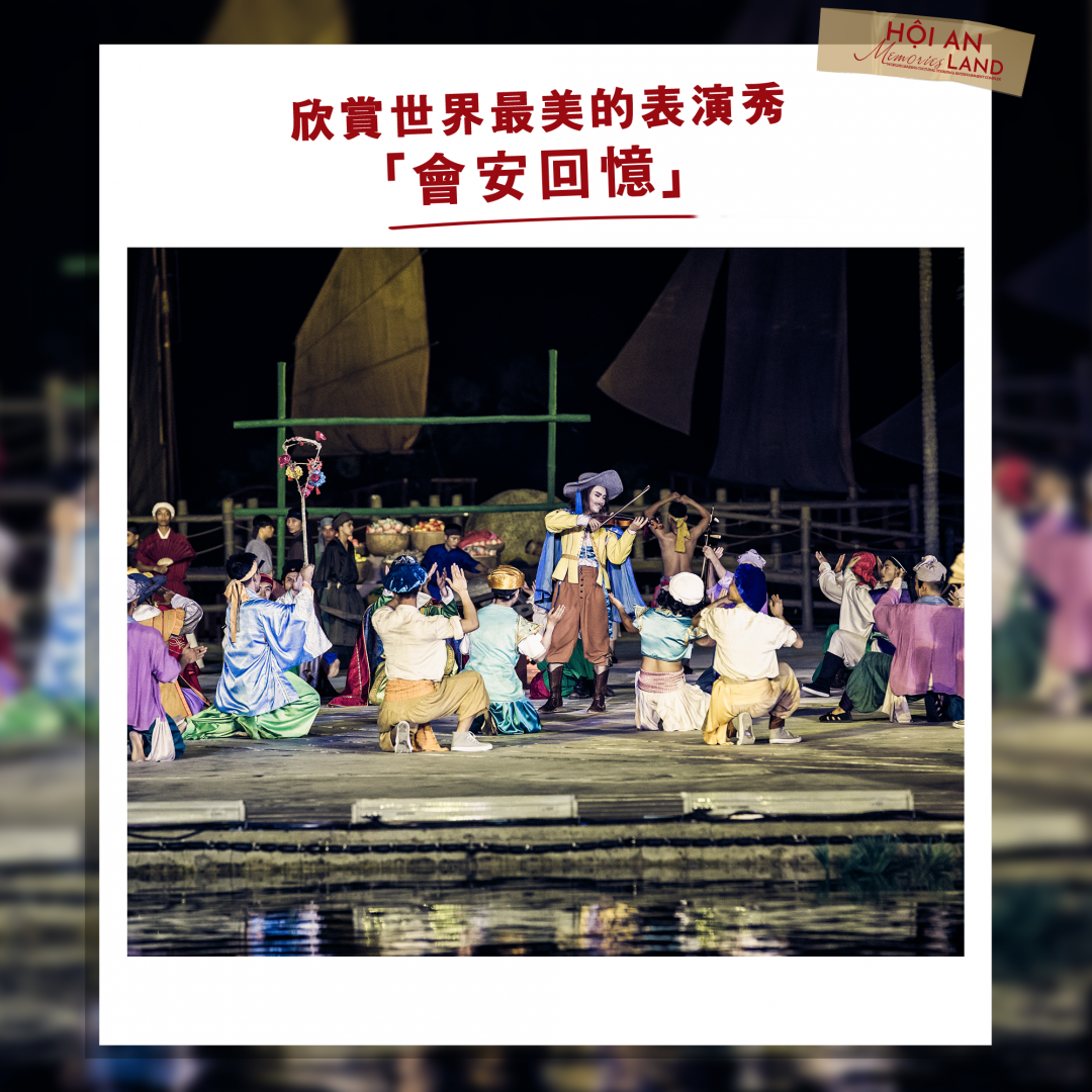 會安回憶位於會安回憶島嶼上最具有印象深刻的位置,很榮幸成為越南最大規模的戶外表演秀。這不僅單純是一場表演而已,這是一場獨特的視覺饗宴,重現了民族文化的精華。
