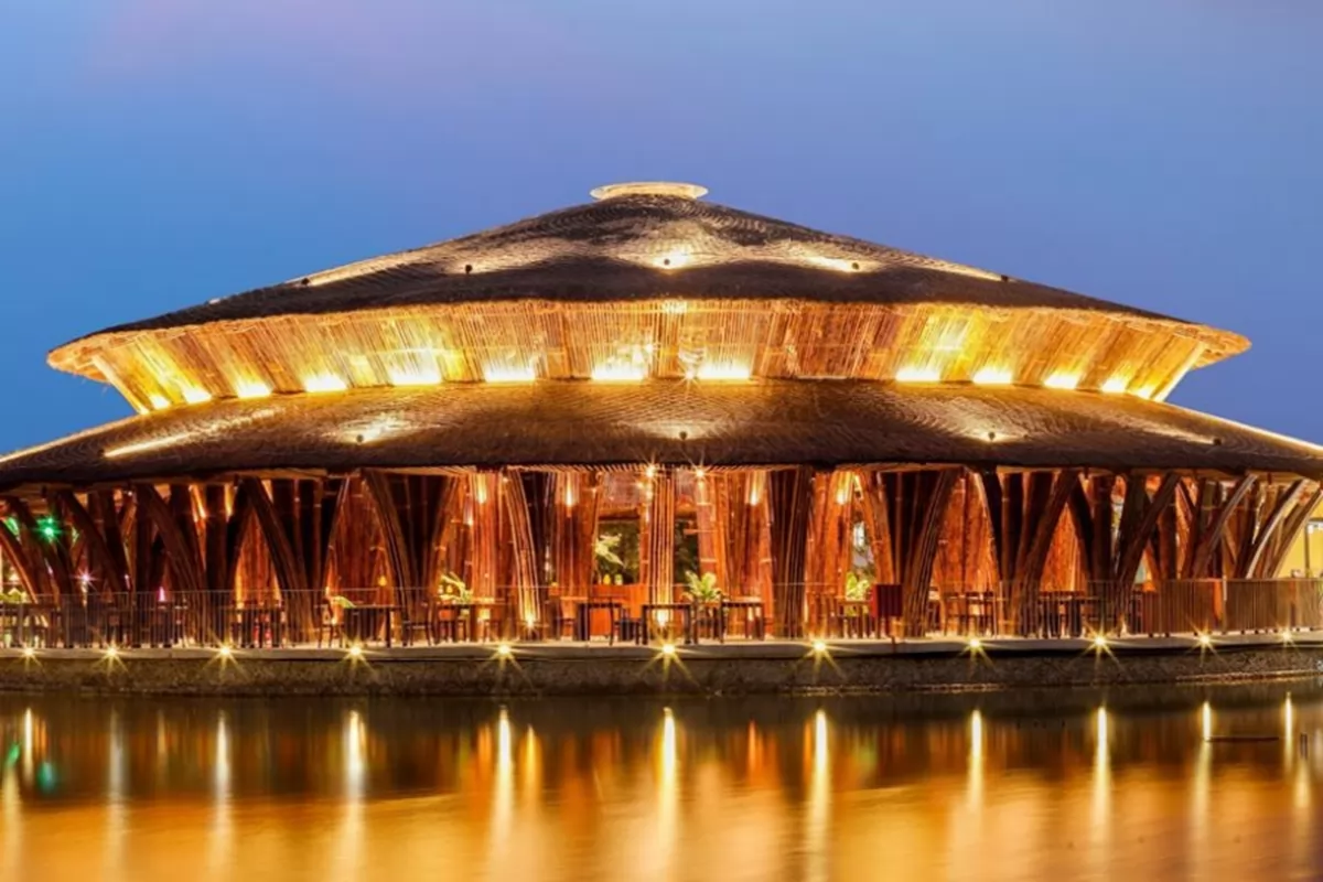 Located exclusively on an islet in the middle of the romantic Hoai River, Non La Restaurant is hailed as a masterpiece of contemporary bamboo architecture. Inspired by the traditional Vietnamese conical hat, the design is stylized into a massive, artistic bamboo dome that breathes with the river breeze, ensuring a cool, airy atmosphere even in summer.