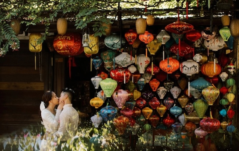 As night falls, the old town transforms, becoming luminous and mystical. Thousands of lanterns in all shapes and colors light up every corner, reflecting on the tranquil Hoai River and turning the area into a fairytale world. This beauty not only captivates tourists but also provides the perfect setting for couples to capture sweet, cinematic moments full of emotion and memory.