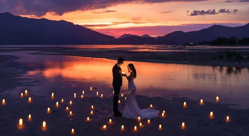 Don't miss the chance to take photos at other unique spots on the island, such as the glowing grass hill, the lotus theater, or the boat dock. The Hoi An Memories Resort & Spa is a perfect location, where its ancient yellow walls and streets filled with thousands of shimmering lanterns provide a luxurious yet romantic setting. Hoi An Memories Resort & Spa often has attractive package deals for couples. You can combine a wedding photo shoot with a 3-day, 2-night getaway at the resort for just 4,666,000 VND for a couple. The package includes:
