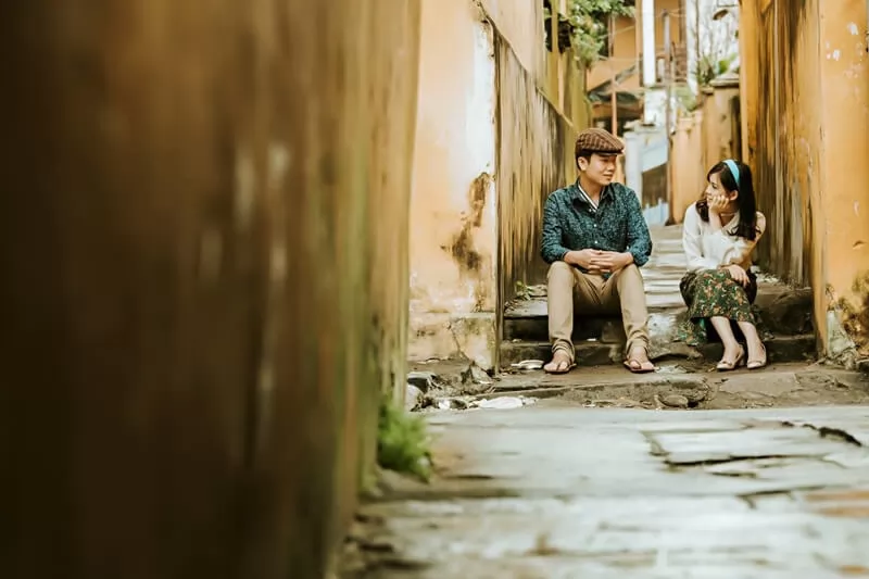In the morning, you can stroll through the ancient streets, where the faded yellow walls become a perfect backdrop for nostalgic, vintage-style photos. By late afternoon, the dreamy Hoai River with its small boats will provide a romantic and poetic setting. Or, the blue sea and white sands of An Bang Beach offer an ideal backdrop for bohemian and free-spirited photos. This versatility allows couples to be creative, telling their love story completely and with a full range of emotions.