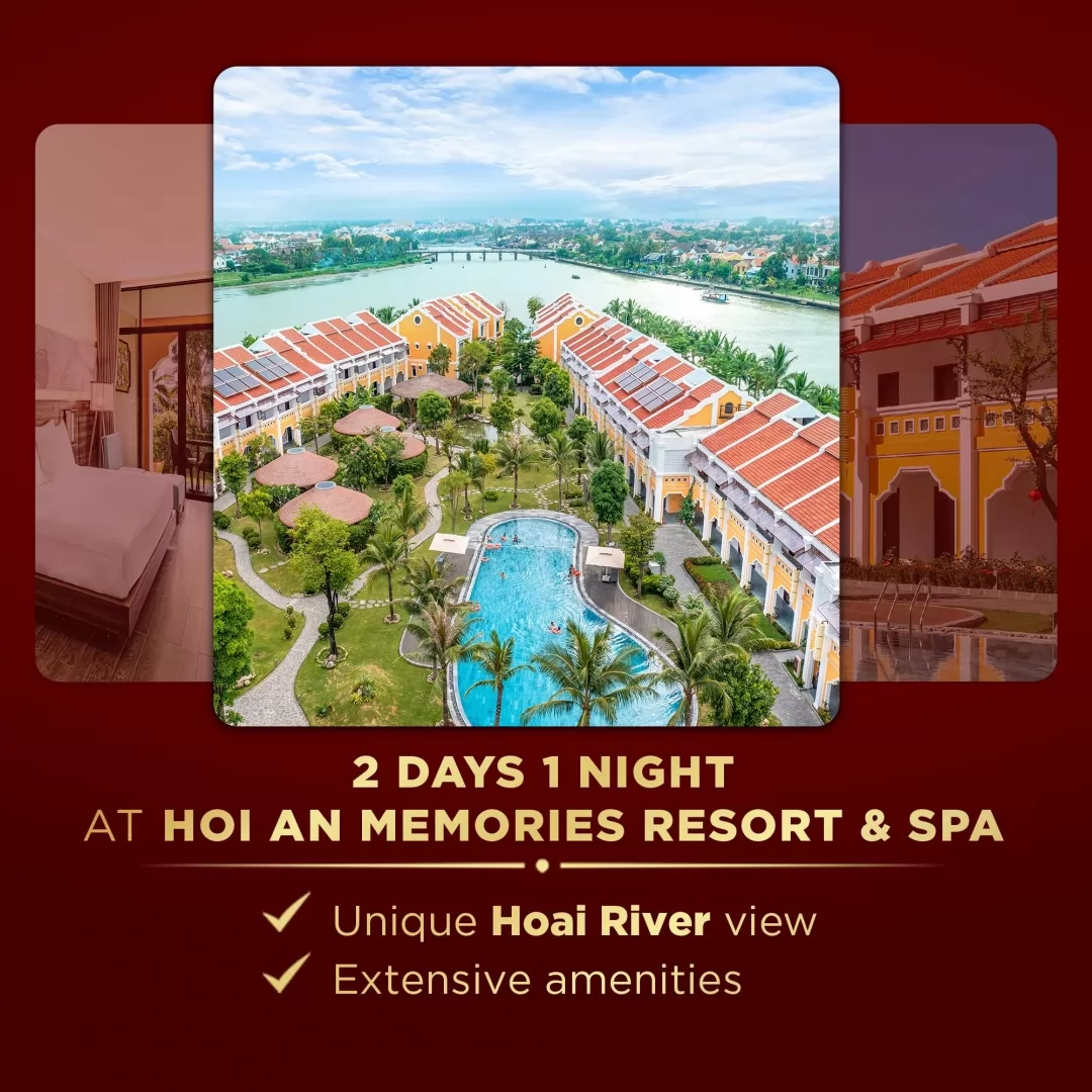 - 2 Days & 1 Night at Hoi An Memories Resort & Spa: Nestled along the poetic Hoai River, every room offers serene river views. With lush greenery and spacious surroundings, this resort promises a relaxing stay.