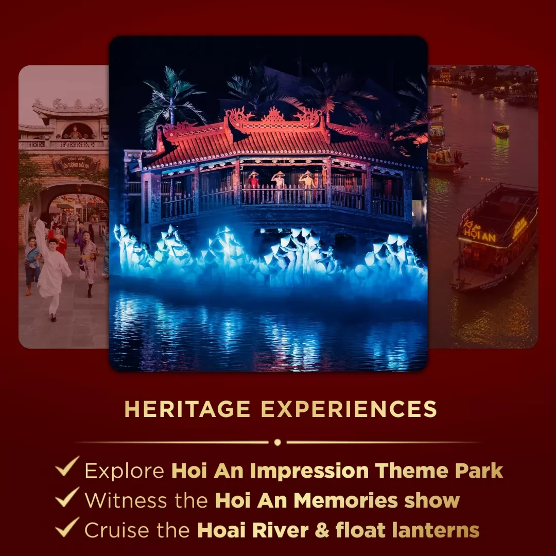 Recognized for three consecutive years by the World Travel Awards as the “World’s Leading Cultural and Entertainment Complex,” Hoi An Memories Land stands out as a premier destination on the global tourism map. Here’s your chance to immerse yourself in Hoi An’s rich culture, explore Vietnam’s first cultural theme park, and witness the world-renowned Ky Uc Hoi An live performance.