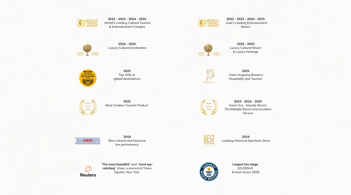 More than just a premier global destination for culture, leisure, and entertainment, Hoi An Memories Land stands as a symbol of Vietnam’s cultural tourism – a source of inspiration that brings the beauty of Vietnam's culture to the world.