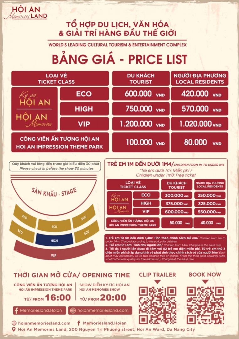 Furthermore, we'd like to inform you that there are many organizations posting information about the show, however, for the most accurate details, you should still refer to all relevant information about the Hoi An Memories Show on our official website, Hoi An Memories Land. Wishing you a truly memorable stay at Hoi An Memories Land in particular and Hoi An in general.