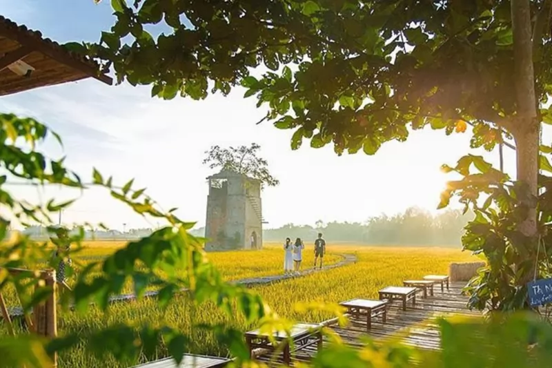 Besides, the bamboo bridge is quite narrow; please yield to each other when moving. Absolutely do not trample on the rice or break the rice plants to take photos. You should choose clothes with colors that contrast with the green/yellow of the rice (such as white, red, or flowing maxi dresses) to stand out in the frame. Don't forget to bring a hat and sunscreen.