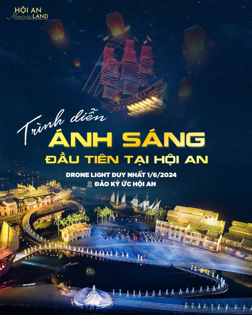 Hè này, nhất định phải đến Đảo Ký Ức Hội An, ngắm drone, thả đèn ước nguyện và hòa mình vào những màn trình diễn ánh sáng độc đáo bạn nhé!