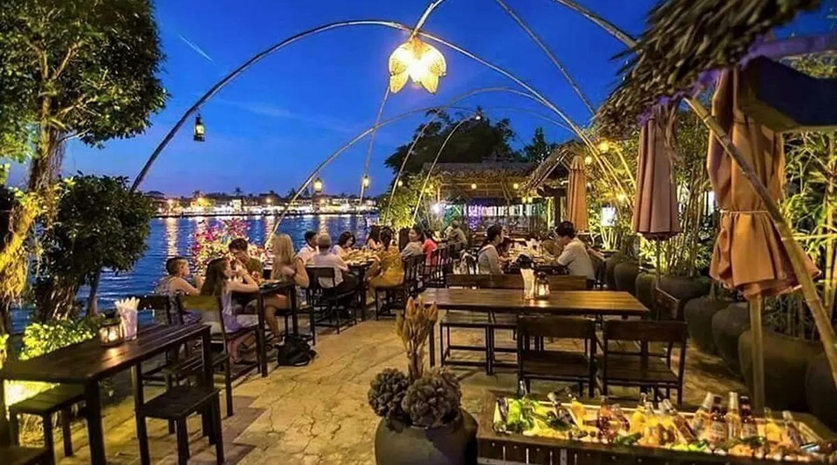 Yếu tố không gian sẽ quyết định rất lớn đến cảm xúc của bữa ăn. Nếu bạn là người yêu sự lãng mạn và phóng khoáng, các nhà hàng không gian mở ven sông sẽ là lựa chọn tuyệt vời để vừa thưởng thức ẩm thực, vừa ngắm nhìn ánh đèn lồng lung linh và dòng người qua lại. Tuy nhiên, cần lưu ý rằng vào mùa hè (tháng 5 - tháng 8), không khí ngoài trời có thể khá nóng và ẩm.