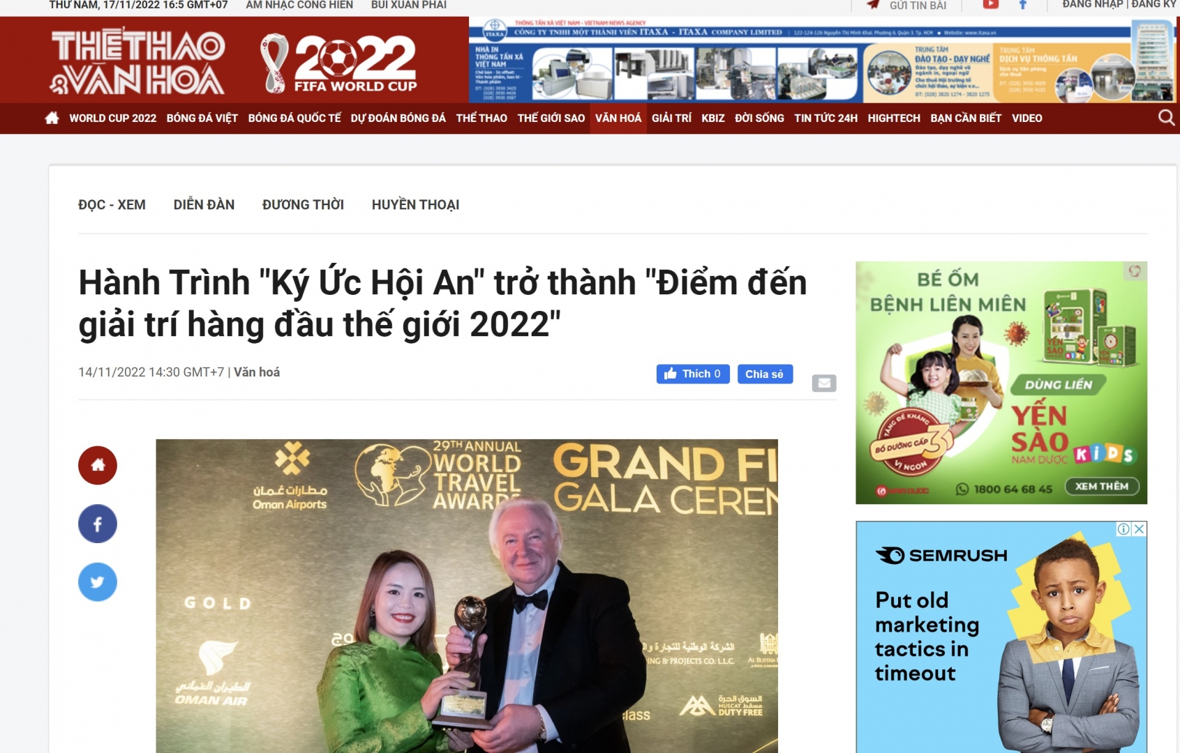 Tham khảo tại: https://thethaovanhoa.vn/hanh-trinh-ky-uc-hoi-an-tro-thanh-diem-den-giai-tri-hang-dau-the-gioi-2022-20221114144344652.htm