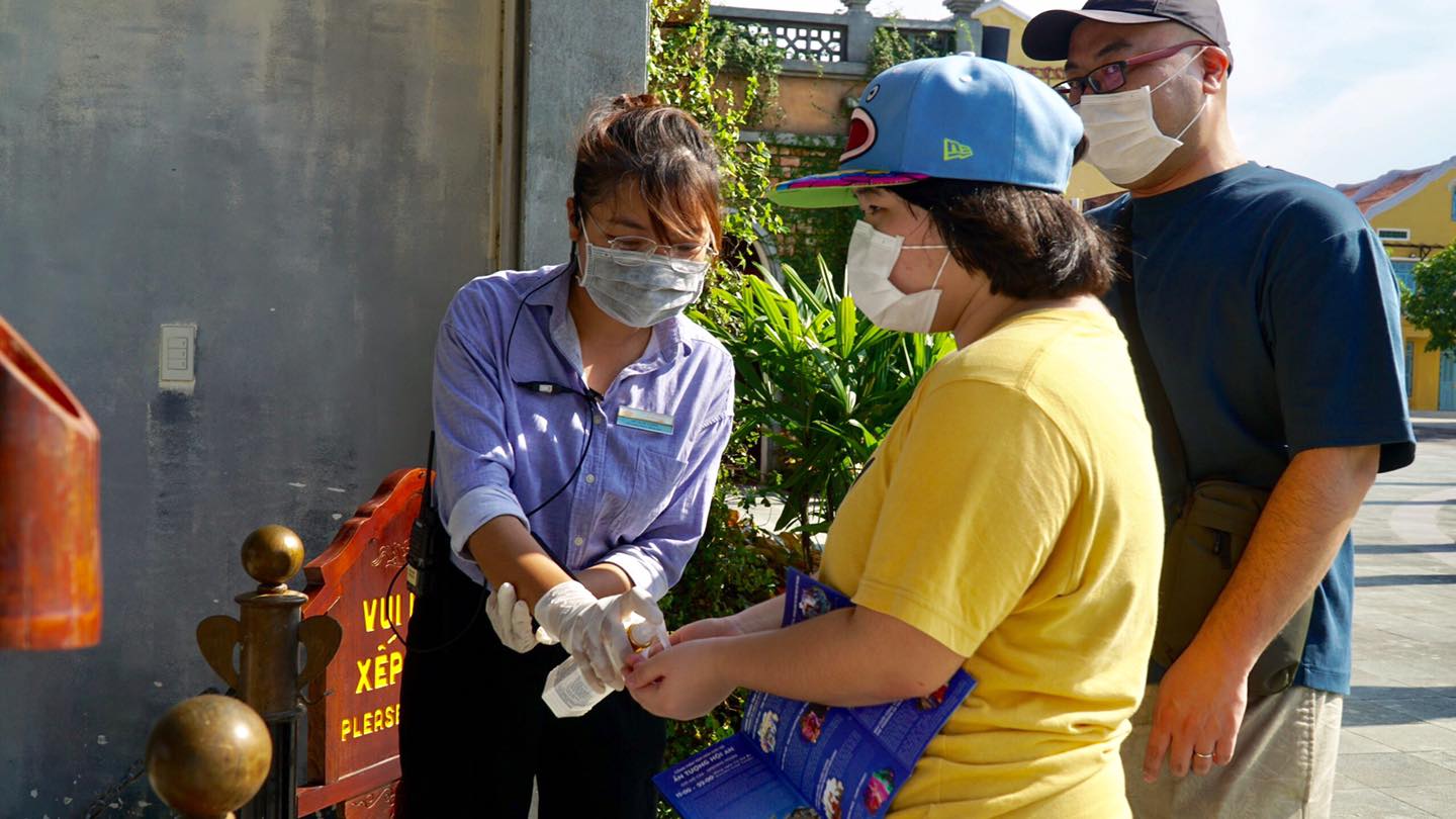 - Sẵn sàng dung dịch sát khuẩn được trang bị khắp các điểm trên Đảo Ký Ức Hội An