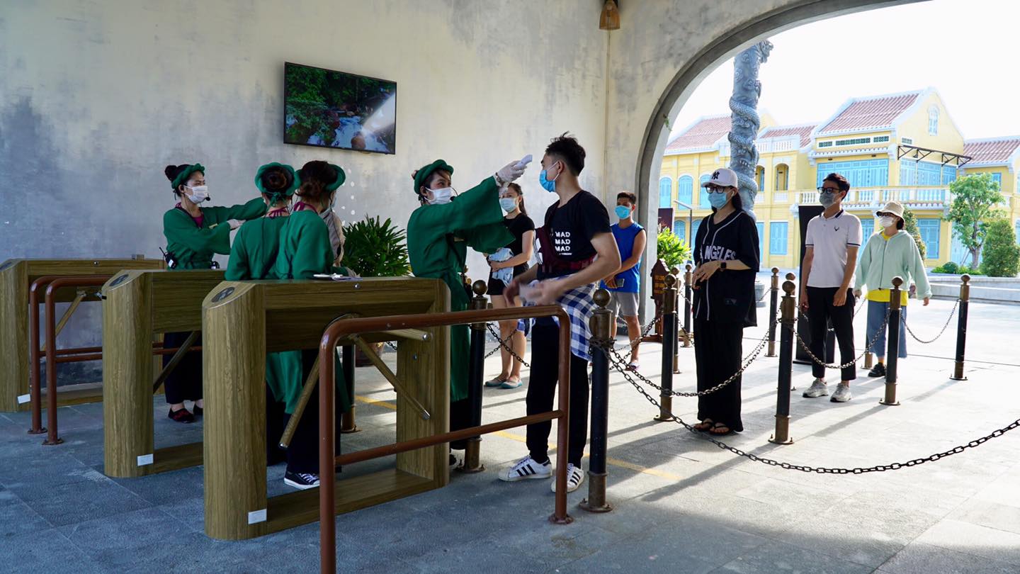 Tất cả du khách đều đảm bảo khoảng cách và đeo đầy đủ khẩu trang