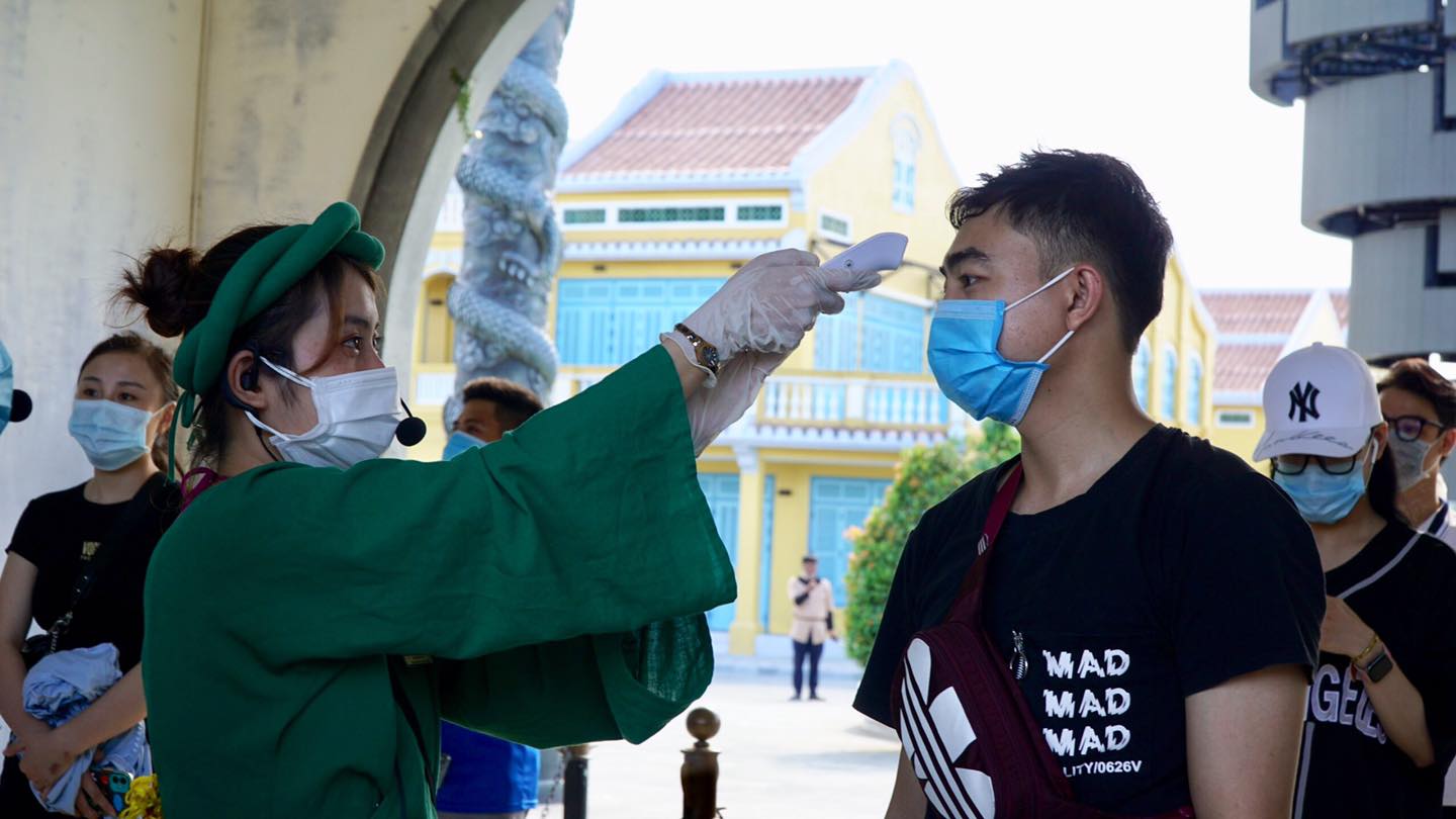 Đảm bảo sát khuẩn trước khi vào Đảo Ký Ức
