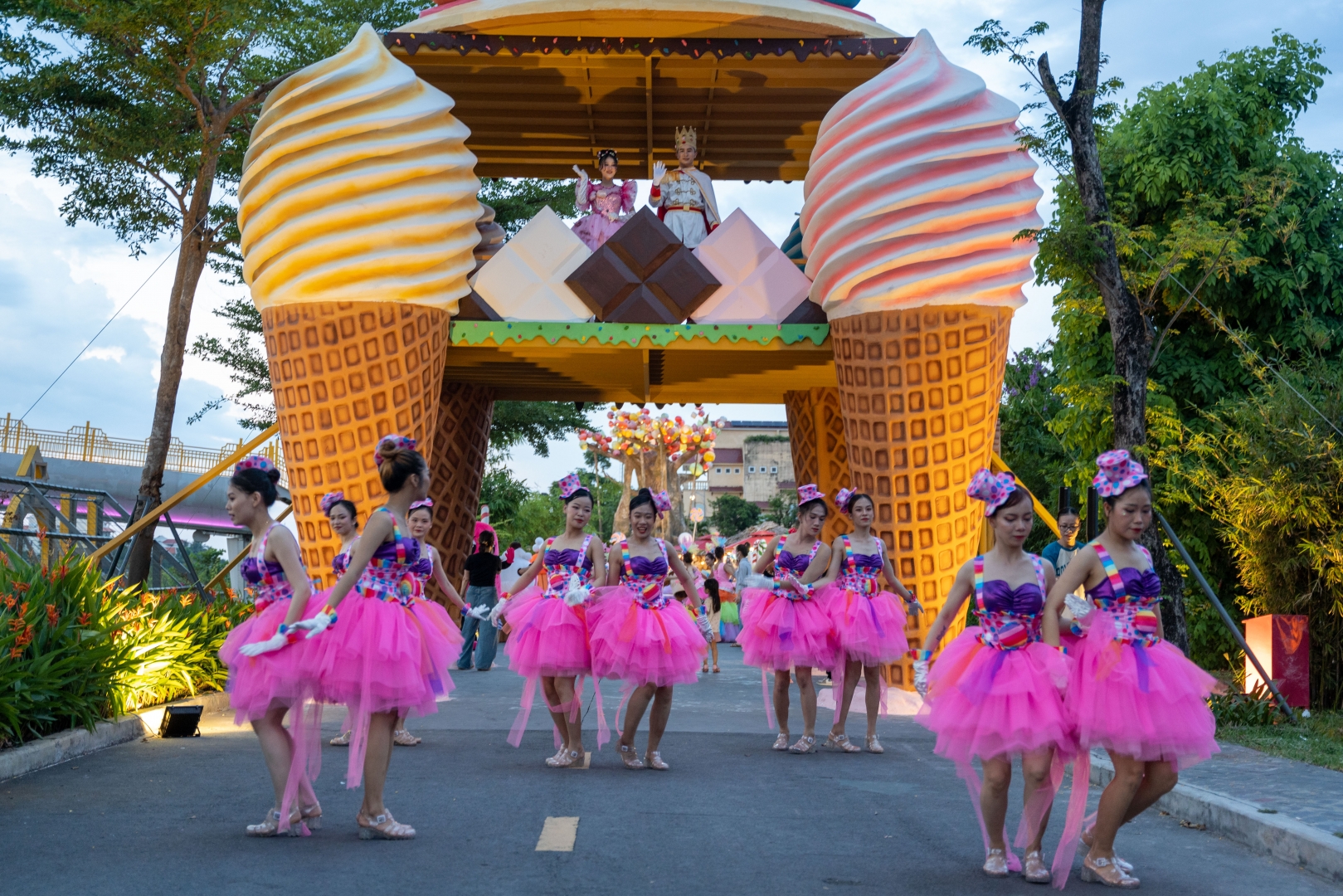 - Chiêm ngưỡng màn diễu hành của công chúa & hoàng tử cùng các thần dân trong Vương quốc kẹo ngọt;