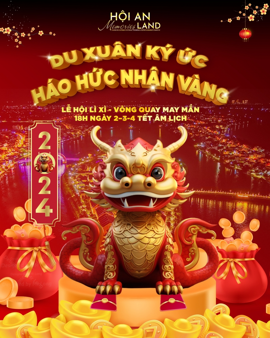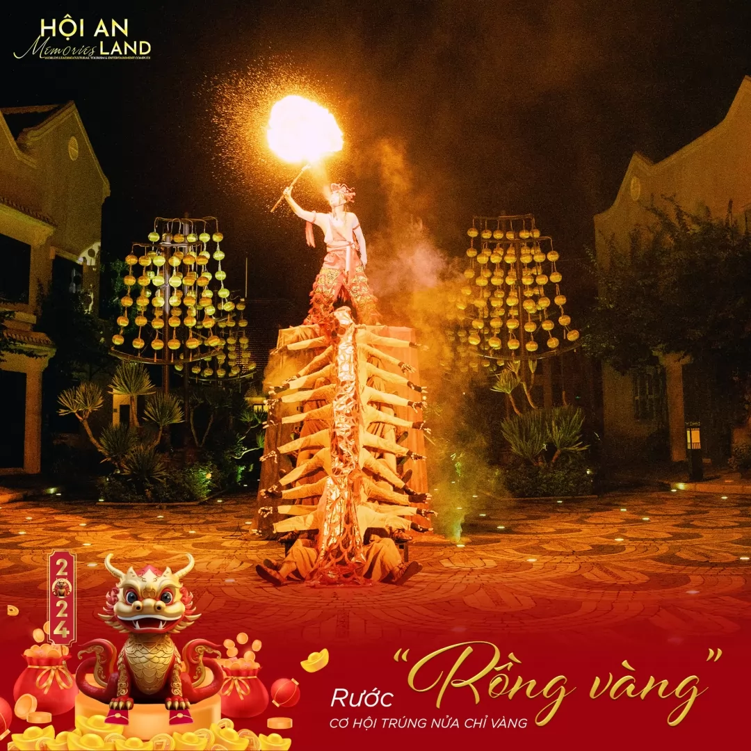 Còn gì tuyệt vời hơn khi lựa chọn du xuân đầu năm tại Ký Ức Hội An và rước lộc vàng về nhà! Đặc biệt, đánh dấu Tết năm rồng bay cao, bay xa, khởi đầu năm mới phát triển, hưng thịnh, chương trình "Rồng vàng may mắn” mang đến trải nghiệm thú vị chưa từng có, hứa hẹn sẽ gíup du khách đón trọn năm 2024 vượng phát.