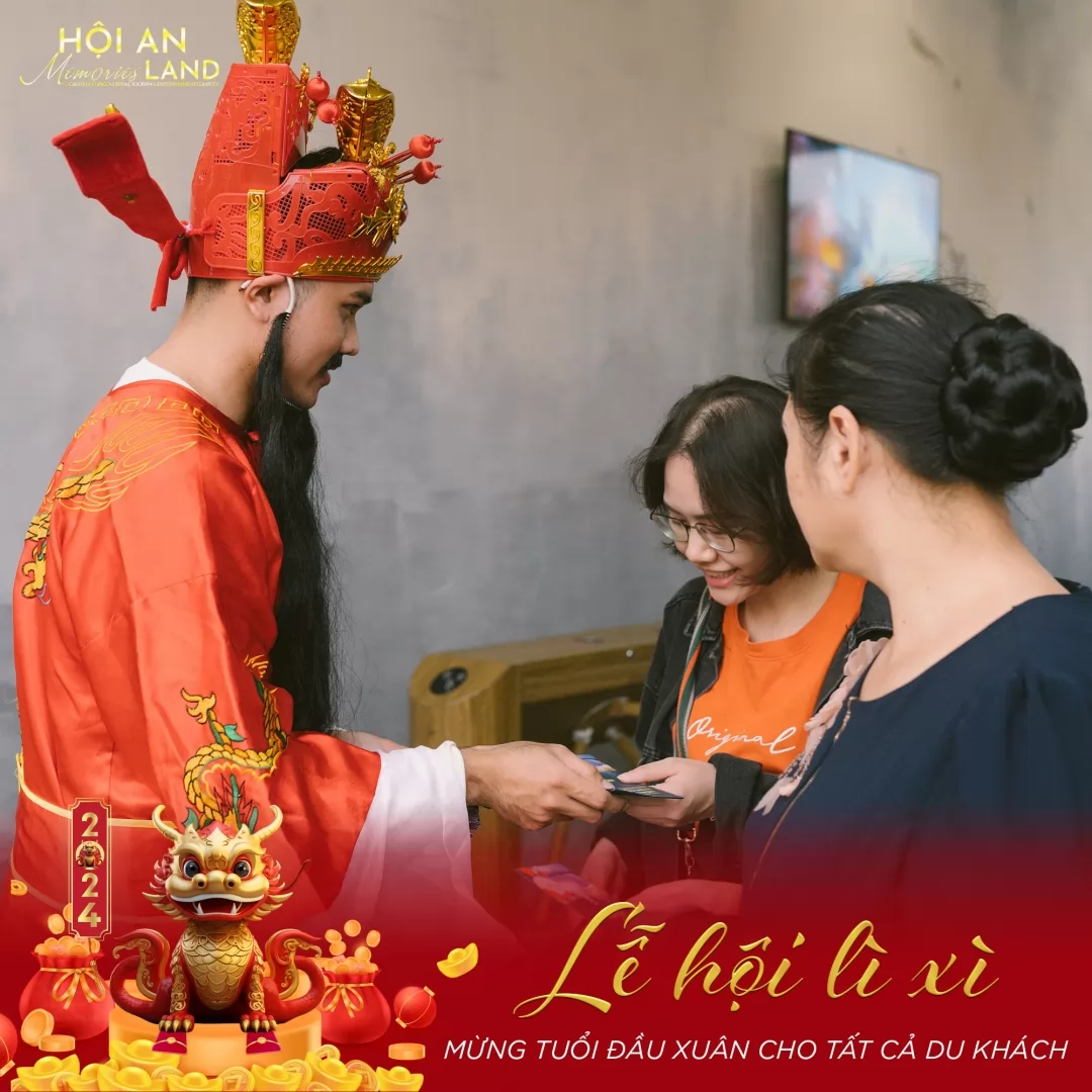 Lễ hội Lì xì là truyền thống không thể thiếu trong mỗi dịp Tết Nguyên Đán của Đảo Ký Ức Hội An. Năm nay, Ký Ức Hội An náo nức mở hội Lì xì từ mùng 2 đến mùng 4 âm lịch (nhằm ngày 11-13/2/2024). Tất cả khách vào Công viên Ấn Tượng Hội An đều được tặng bao lì xì, thay cho lời chúc một năm thịnh vượng và hạnh phúc mà Đảo Ký Ức Hội An gửi đến du khách.