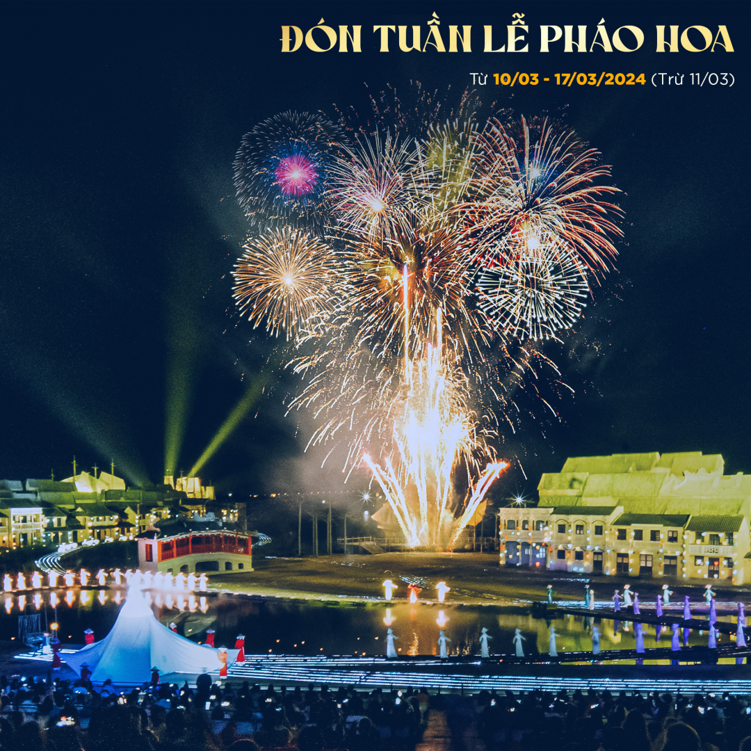 Không gian Hội An sẽ bừng sáng với những màn pháo hoa rực rỡ vào mỗi đêm từ 10/03 - 17/03/2025 (trừ ngày 11/03), cùng Ký Ức Hội An bước sang tuổi mới với những khoảnh khắc thật đặc biệt. Đây là cơ hội tuyệt vời để bạn đắm chìm trong bữa tiệc thị giác ấn tượng, thoả sức sống ảo với những bức hình lung linh.