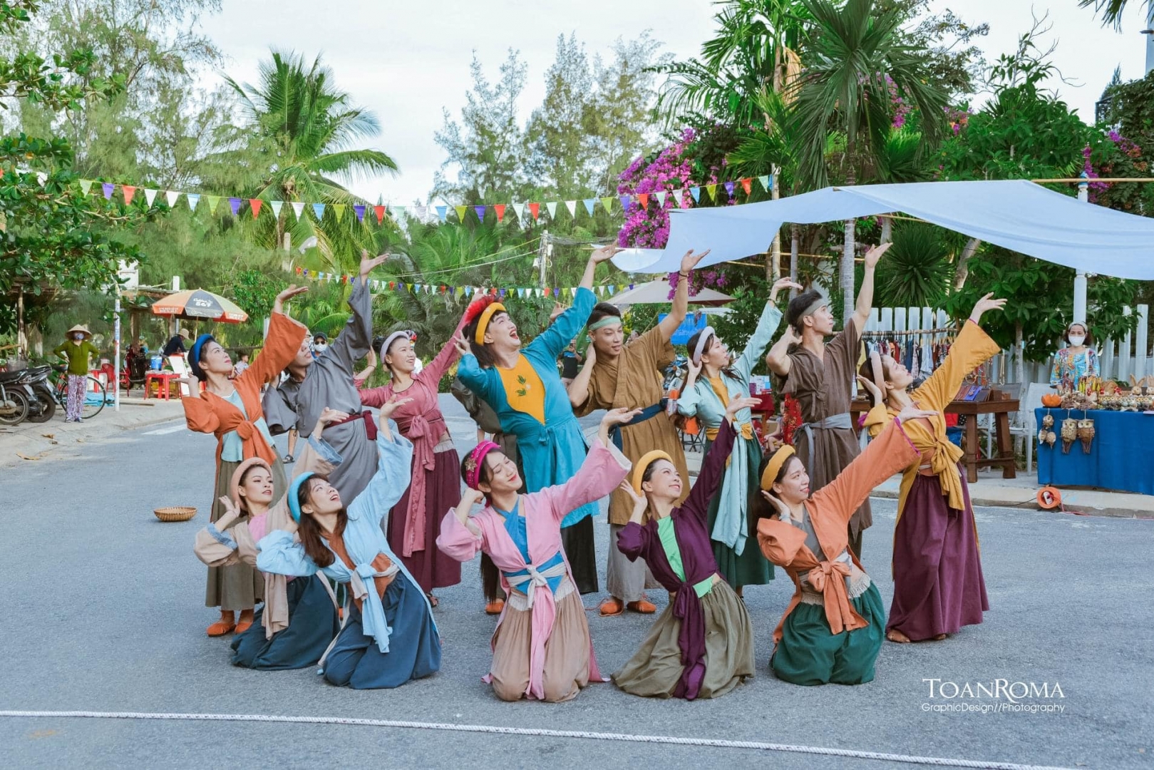 Diễn viên Nhà hát Ký ức Hội An biểu diễn tại Chợ phiên Làng chài Tân Thành