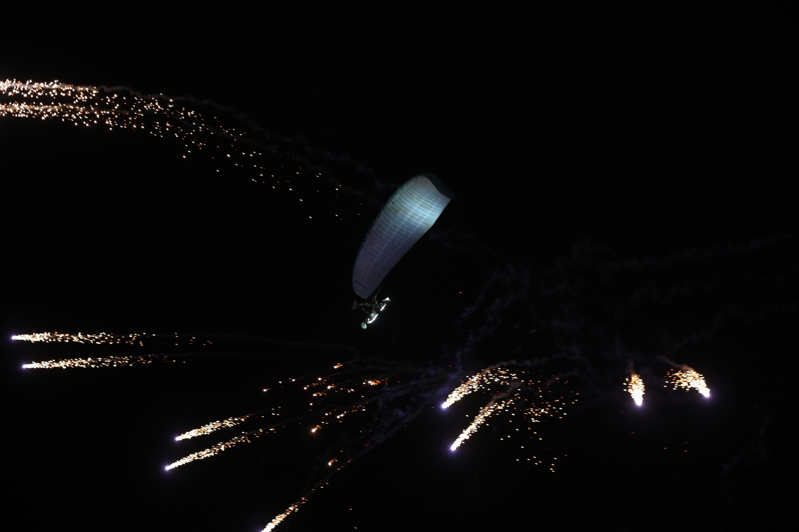 Màn trình diễn dù lượn hỏa thuật ngoạn mục, mang đến những khoảnh khắc mãn nhãn cho khán giả.