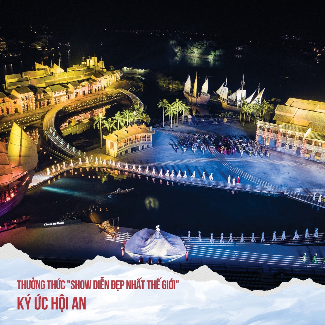 Với sự góp mặt của gần 500 diễn viên chuyên nghiệp, sân khấu ngoài trời rộng lớn kết hợp công nghệ 3D mapping, hiệu ứng nhạc nước và lửa sống động, từng phân cảnh trở thành một kiệt tác. Bạn sẽ được sống lại hành trình hơn 400 năm lịch sử Hội An: từ một làng chài ven sông Hoài, đến thương cảng quốc tế sầm uất, rồi trở thành di sản văn hóa thế giới.