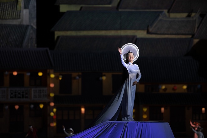 Diễn viên Trần Hằng đã lần đầu tiên ngồi ở vị trí cô gái áo dài khung cửi hơn 3 tiếng rưỡi liên tục. “Khi nhận được chỉ đạo, em chỉ kịp nghĩ, du khách còn thì biểu diễn chứ nói gì tới cả 2 suất diễn đều lấp đầy khán đài như vậy. Cảm giác này tuyệt vời lắm. Thế nên, dù rất mệt, nhưng với sự nhiệt tình của tuổi trẻ, sự chuyên nghiệp nên cố gắng hoàn thành nhiệm vụ vào ngày đặc biệt với 2 suất diễn trong 1 đêm, thì em nghĩ, ai cũng thật là phê. Em cảm ơn khán giả và mong được tiếp tục ủng hộ”.