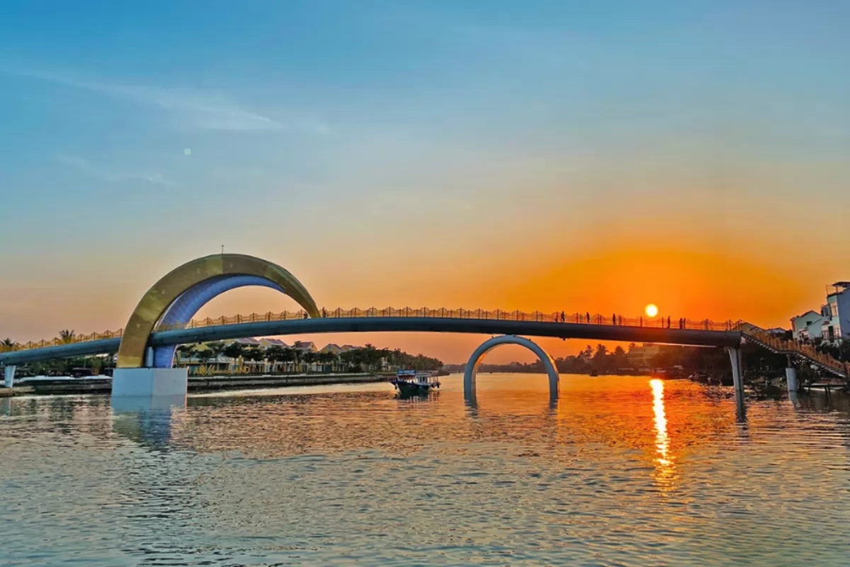 Nếu muốn tìm một góc ngắm hoàng hôn thoáng đãng, ít bị che chắn, các cây cầu quanh Hội An là lựa chọn rất đáng cân nhắc. Từ đây, bạn có thể quan sát trọn vẹn khoảnh khắc mặt trời lặn trên sông nước và đường chân trời.