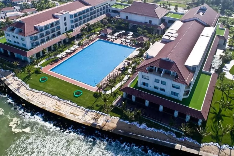Được xây dựng trên một khu đất riêng giữa hai nhánh sông, Koi Resort & Spa gây ấn tượng với thiết kế như một “làng Việt cổ thu nhỏ” nhưng tiện nghi hiện đại. Có villa riêng, hồ bơi lớn, nhà hàng ven sông và spa chất lượng.