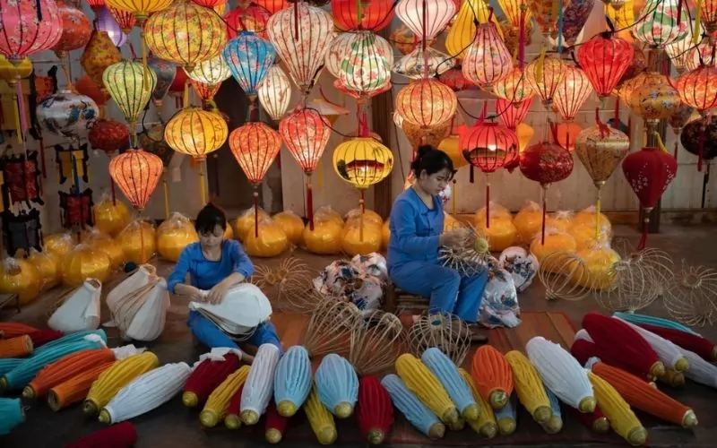 Du khách có thể tham gia lớp làm đèn lồng truyền thống khi đến Hội An