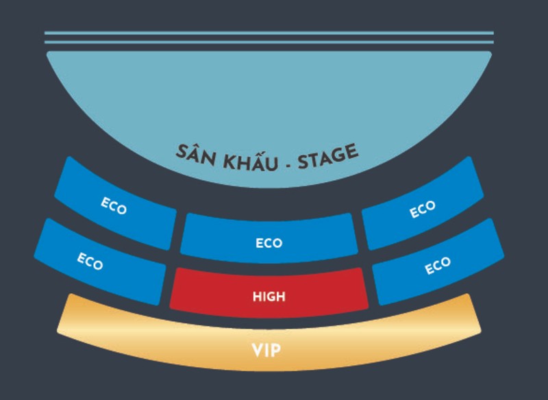 Sơ đồ chỗ ngồi của các hạng vé xem show Ký Ức Hội An